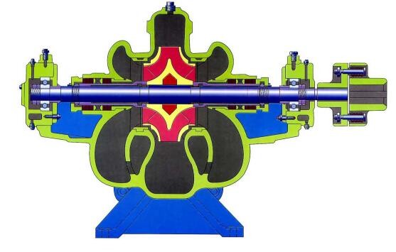 2、泵的主要零件有泵體、泵蓋、葉輪、軸、雙吸密封環、軸套和軸承體等。如下圖: